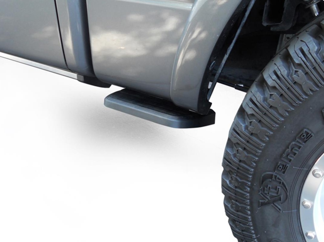 Boční skládací nášlap pro pick-up RAM. AMP Research Bedstep2 se montuje těsně za kabinou, před zadním kolem, což poskytuje rychlejší, snadnější a bezpečnější cestu pro přístup ke schránkám s nářadím, vybavení a nákladu na korbě. Tento skládací nášlap se lehce instaluje na rám vozu. Lze jej nainstalovat na obě strany korby pick-upu. Sklápí, nebo vyklápí se lehkým pohybem nohy.